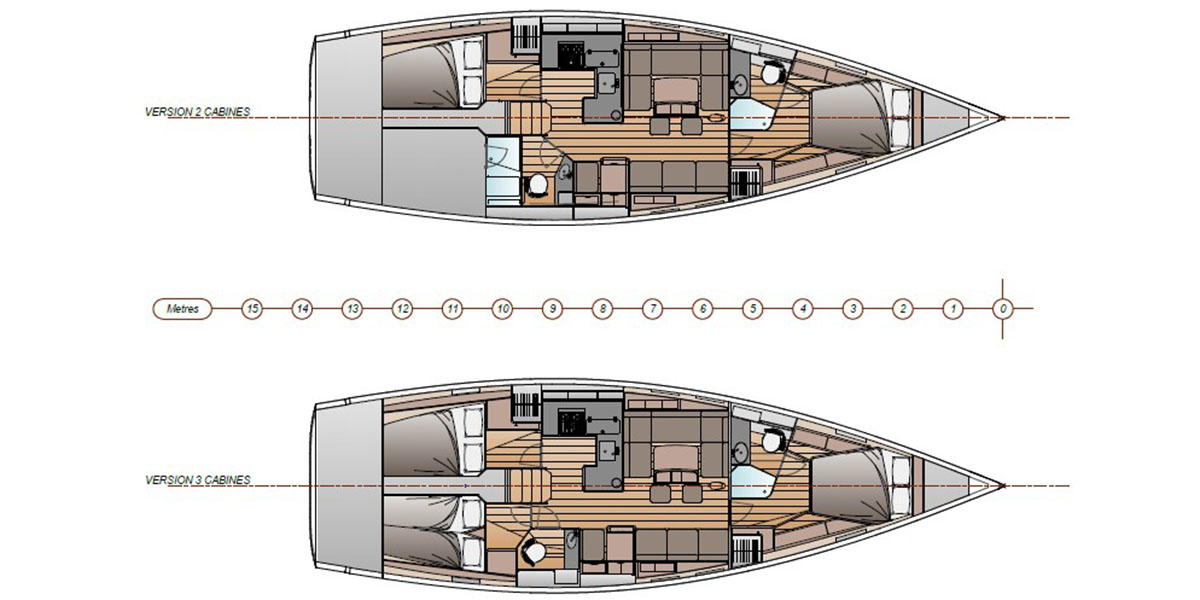 Główną zasadą projektową było maksymalne wykorzystanie przestrzeni i zapewnienie komfortu, przy jednoczesnym zachowaniu eleganckiej sylwetki, minimalnej powierzchni zmoczonej oraz zdecydowanie najniższej wagi w tej klasie jachtów.